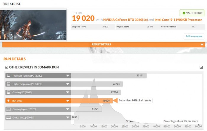 从跑分来看,装备酷睿 i9-11900KB CPU 的英特尔 NUC 11 Extreme 'Beast Canyon' PC 成绩非常不错。该 NUC 装备了 NVIDIA GeForce RTX 3060 显卡,16GB 的 DDR4 内存以及 1TB 的 SSD。