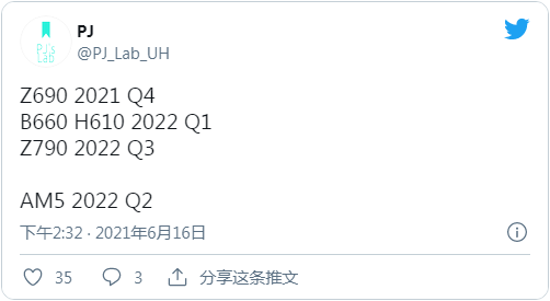 有趣的是,PJ 还分享了对于英特尔 700 系列平台的展望,预计首批主板将于 2022 年 3 季度前后推出。