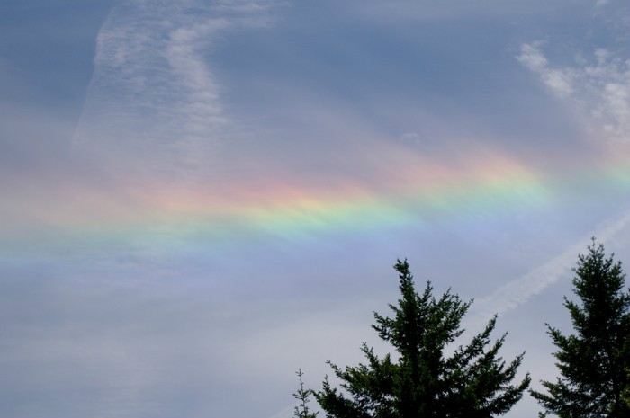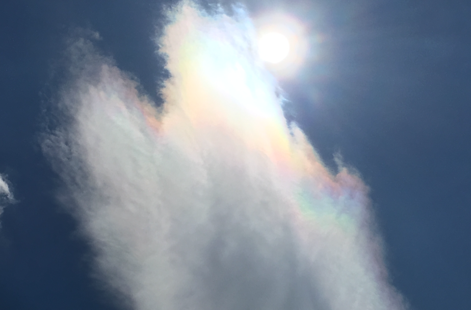 这是一种发生概率较低的罕见现象,一般发生在太阳位于高角度位置,其光线穿过高海拔带有较多冰晶的卷云层形成的情况下。带有冰晶的卷云层折射光线形成不同可视光谱的波段。