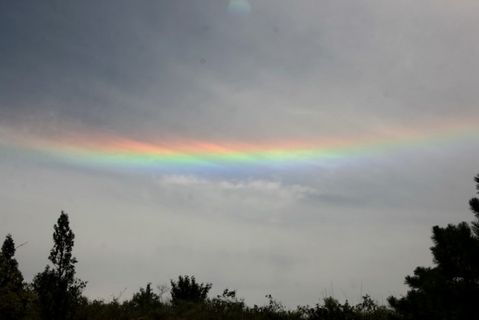 环地平弧又称日载、日承,民间也有火焰彩虹的说法,被誉为所有晕像中最美丽的,其颜色顺序自上而下分别为红色、橙色、黄色、绿色、蓝色、靛蓝、蓝紫色。