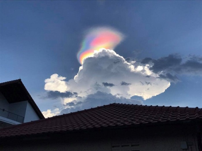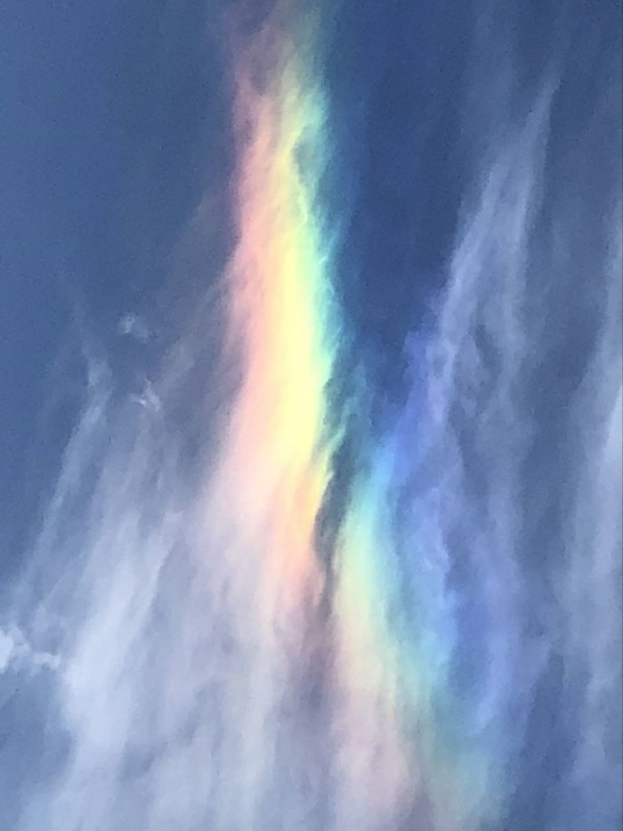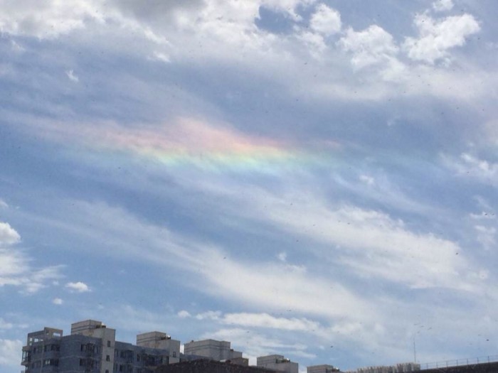 6月18日下午,北京大兴区上空同时出现彩虹云、环地平弧两大晕像奇观,令人称奇。彩虹云是一种由云团里的小冰晶散射阳光而形成的自然现象,色彩绚烂,以前经常被误认为是UFO。近些年,我国多地都曾出现过彩虹云,比如2013年6月福建平潭,2014年北京西城区和海淀区,2020年8月山西榆次。