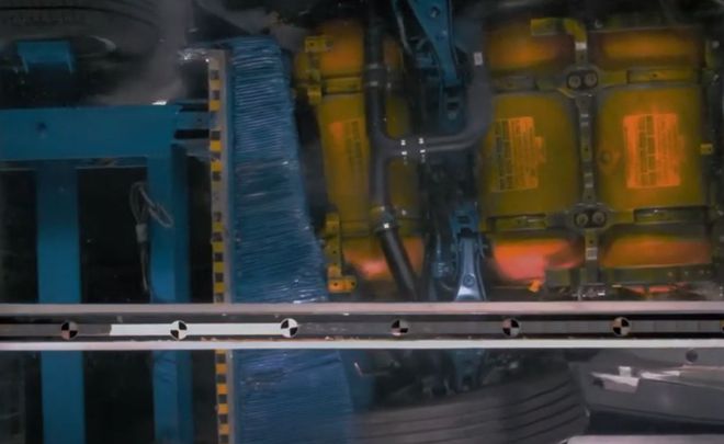 正在进行碰撞测试和枪击测试的车用储氢罐 视频截图