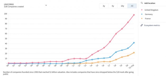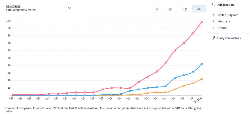 2021 年到目前为止,已经有 13 家英国科技独角兽企业诞生,而 2020 年全年只有 7 家,自 2017 年以来,英国科技独角兽企业的数量增加了 127%,当时英国有 44 家科技独角兽企业。自今年年初以来,英国的科技初创企业已经筹集了 145 亿美元,超过了去年下半年 89 亿美元的前纪录,现在还剩下两周的时间。