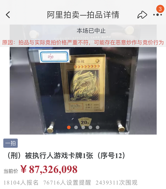 这个事情就和当年 B 站那个 98 亿元的天价手办很像,都是在恶意竞价扰乱拍卖秩序。
