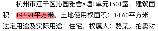 拍卖的这个房子,建筑面积是 193.91 平,算下来价值接近 887 万元。
