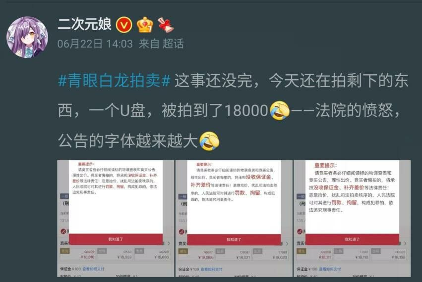 对此差评君也没啥好建议的,只能说各位乱出价的网友差不多就得了,人家法院是真的有权力让你蹲号子的。