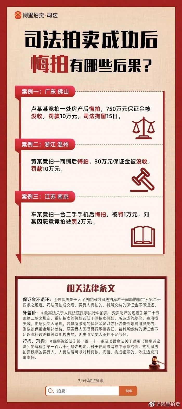阿里法拍里早就明明白白告诉你乱出价是什么下场了,没收保证金那都是小事,吃牢饭才是大事啊!