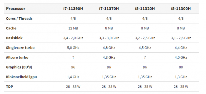H35系列型号不多,之前首发的时候实际上主要是酷睿i5-11300H、酷睿i7-11370H两款,现在发布的则是主要是酷睿i5-11320H、酷睿i7-11390H两款。