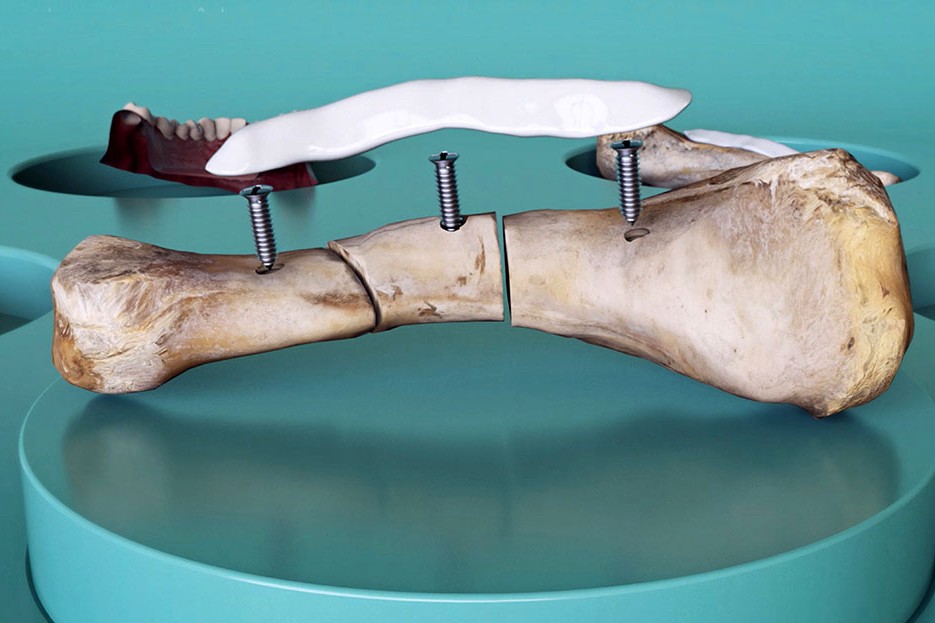 要使用该系统,外科医生首先将螺丝钉插入需要稳定的每一块骨头。螺丝钉的头部从骨头上突出,使它们能够作为锚点。接下来,在目标区域建立一个临时的柔软和可塑的贴片,横跨并包括所有的螺钉头。