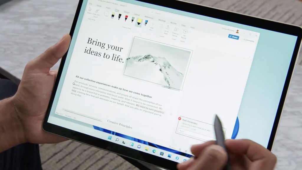对于手写笔用户来说,Windows 11 还引入了触感体验。辅以带有新主题的触屏键盘,智能机用户一定不会对它感到陌生。此外浮动键盘还特别适合搭配手写笔来使用。