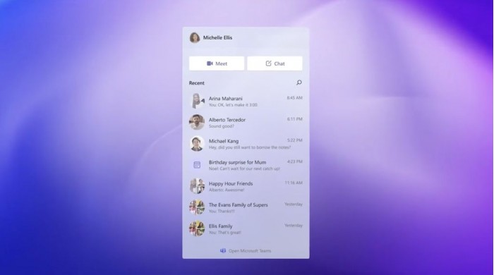 Panay重回画面并称Teams将直接被集成到Windows中。Microsoft Teams 也与 Windows 实现了更紧密的集成。任务栏上的Teams图标会弹出聊天列表,这使得连接速度变得更快。演示视频时间。画面弹出一个聊天列表,然后是聊天窗口,然后是视频通话。很显然,大家看到的是一大堆聊天和视频通话。