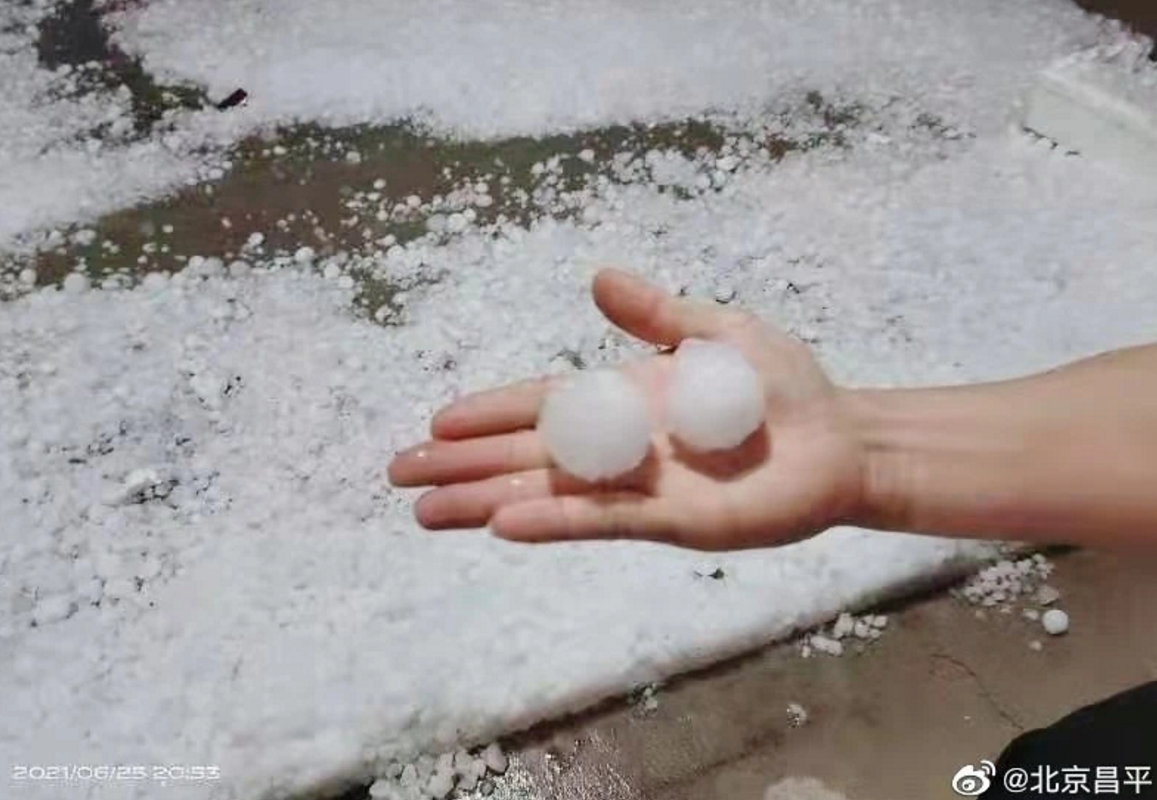 近期在雨水的影响下,北京的高温“偃旗息鼓”。目前北京延庆、密云等地出现疾风骤雨,延庆区出现硬币大小的冰雹。据气象北京消息,北京市气象台2021年6月25日21时05分发布冰雹黄色预警信号:预计,至26日00时,北京市平原地区将出现分散性冰雹,请注意防范。