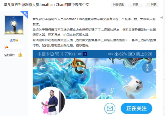 那么这次宣布加入天美西雅图工作室的这位JonathanChao又是何许人呢?在玩家心中,这位JonathanChao是一个很愿意在推特上解答玩家问题的拳头官方手游制作人员。