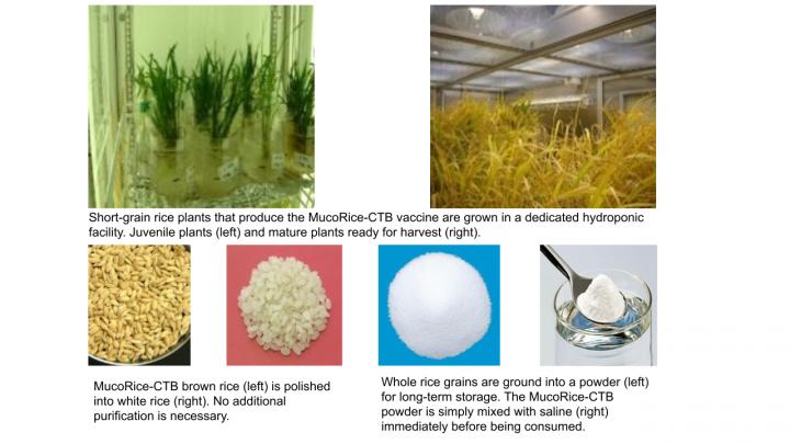 目前存在多种不需要注射的霍乱疫苗;它们以滴在病人舌头上的方式给药,但有一个主要的缺点:它们是由霍乱细胞制成的,需要冷藏,让接种疫苗时让很多人困惑。基于大米的疫苗则不同--它被设计为产生霍乱毒素B的一个无毒部分。