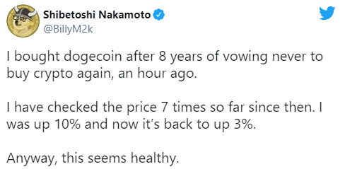 近日,狗狗币创始人之一马库斯 (Billy Markus) 宣布:在旁观 8 年之后,将重返加密货币领域 。Markus 在社交媒体上表示使用 Robinhood 购买了 DOGE, 且不打算在短期内出售新买的狗狗币。