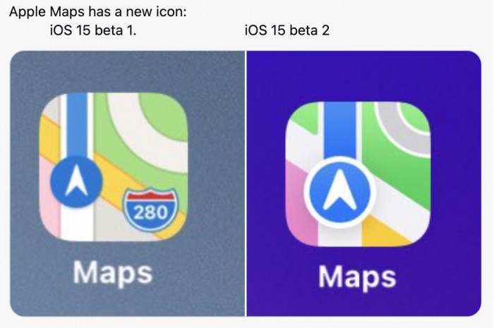 全新地图图标,与 iOS 15 beta 2 相匹配