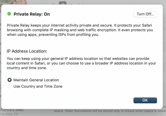 升级 iCloud Private Relay 偏好设置的文字介绍,之前是“保留大约位置”,改为“使用更广泛的位置”