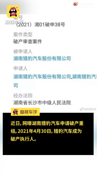 对于猎豹汽车的印象,或许大家还停留在父辈级座驾——猎豹黑金刚。因其外表与三菱帕杰罗极为相似,以至于当年火遍大江南北。时隔多年,猎豹汽车再次成为人们热议的对象,不过这次确实因为破产。6月29日,据媒体报道,网曝湖南猎豹汽车申请破产重组,2021年4月30日,猎豹汽车成为破产执行人。