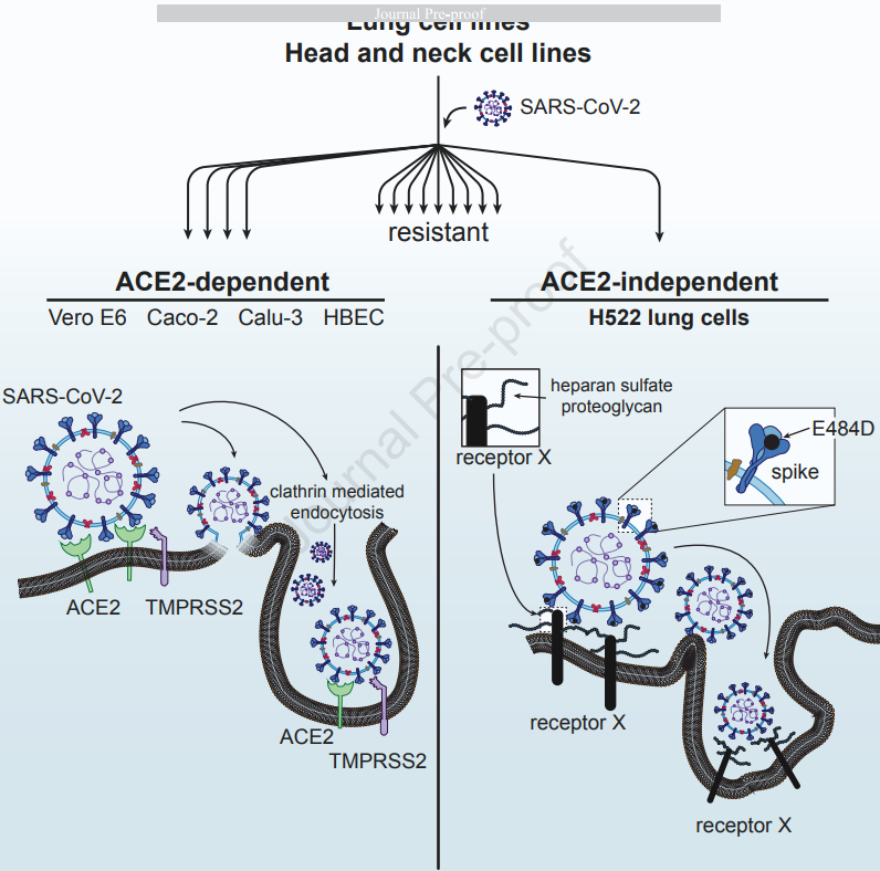 共同第一作者、分子微生物学副教授Sebla Kutluay博士说:“这种突变发生在病毒在人类群体中循环时变化很大的一个点。大多数时候,替代性受体和附着因子只是增强ACE2依赖性的进入。但在这种情况下,我们发现了一种感染关键细胞类型--人类肺部细胞--的替代方式,而且病毒是通过我们知道在人群中出现的一种突变获得这种能力。这是我们肯定需要了解更多的东西。”