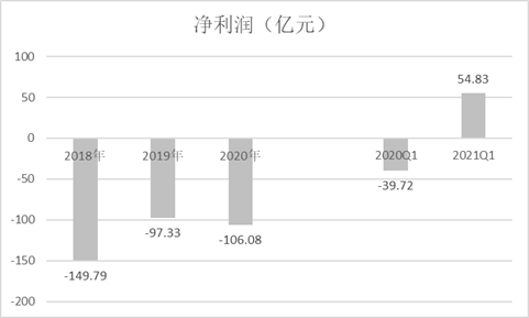 2018年、2019年及2020年,滴滴分别净亏损150亿元、97亿元及106亿元。在2021年一季度,滴滴首次录得季度盈利,净盈利55亿元。
