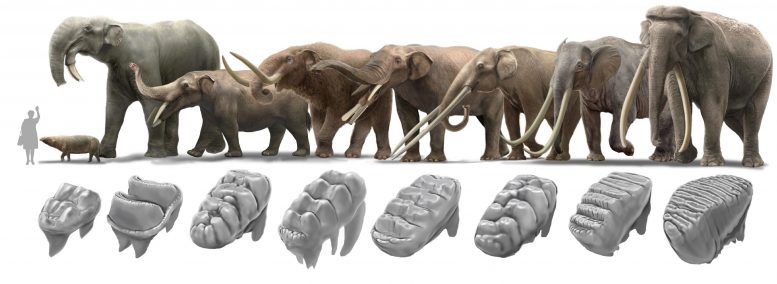 “在这段时间里,大多数长鼻动物都是不知名的食草动物,大小从八哥到野猪都有。少数物种变得像河马一样大,然而这些品系是进化的死胡同。它们都与大象没有什么相似之处。”