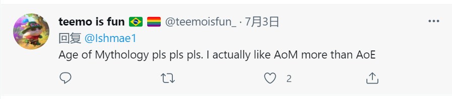此前《帝国时代》品牌创意总监Adam Isgreen曾表示他们没有忘记《神话时代》,总会被工作室的人提起。因此大量粉丝希望World's Edge工作室能尽快开发《神话时代》新作。