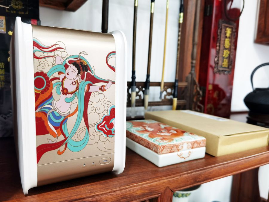 总的来说,联想个人云存储T2是一款非常强大的产品,而敦煌联名款在此基础上让其更加美观且增添了一份艺术气息,它周身的反弹琵琶设计非常有特色。联名版的美不是丝丝涓流的柔美,而是豪迈壮阔的大气之美。看着它,不禁让人在眼前闪显出驼铃悠扬中,片片简牍被送入藏经阁的画面,这也让T2相较于传统的数码存储设备多了一份人文色彩。无论是居家还是办公环境,它都可以很顺畅的融入场景。在数据存储能力上,无论是存取速度、数据安全还是UI的人性化,应该说联想个人云存储T2的表现都在水准之上。