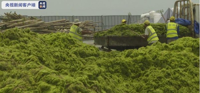 青岛市海洋与渔业行政执法支队支队长张永举表示,青岛市海域今年浒苔覆盖面积是去年的9倍。青岛市已于6月18日发布海洋大型藻类灾害橙色预警,并启动二级应急响应。目前,浒苔密集区已经抵达青岛市近岸海域,受持续东南风和往复流影响,给近岸处置造成了巨大压力。