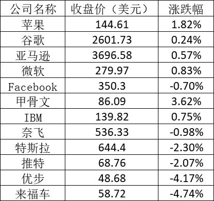 具体来说,美股中的主要科技股表现如下:
