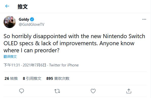 7 月 6 日,任天堂正式推出了 Switch OLED 型号。该机将于 10 月 8 日全球发售,零售价格为 349.99 美元。但在该机推出之后,由于和此前谣传中的 Switch Pro 存在巨大落差,很多玩家都表示对任天堂的“挤牙膏”行为表示不满。