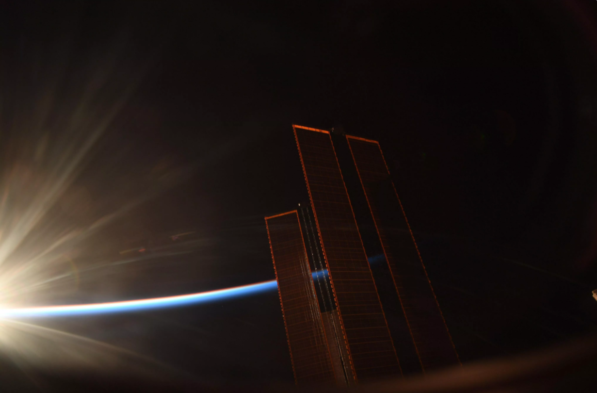 Kimbrough发推文称:“拍摄了这个轨道日出,因为太阳光从太阳能电池板和新的IROSA上反射出来,这是第一次在这个轨道上为空间站提供太阳能,以运行这个神奇的轨道实验室。”