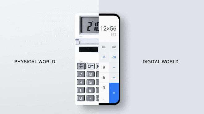 在方案探索阶段,华为发现小工具等模块是一个很好的场景,都可以在物理世界中找到映射的对象,比如像计算器,可以把物理世界中计算器按钮的感觉融入到电子计算器,在微微凸起的按钮上面,做凹下去的效果,强化用户本身点击按钮的反馈。