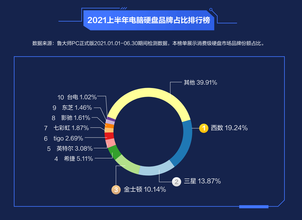 三星13.87%排名第二,金士顿则以10.14%位列第三。