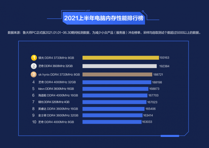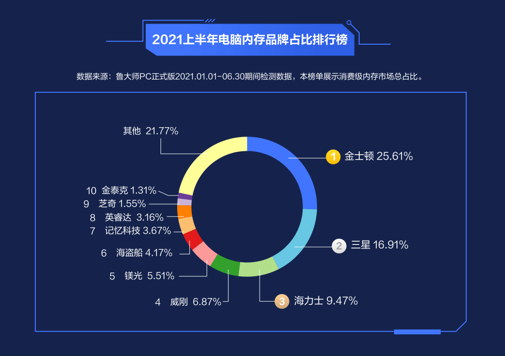 海盗船、记忆科技、英睿达、芝奇、金泰克也都进入了TOP10。