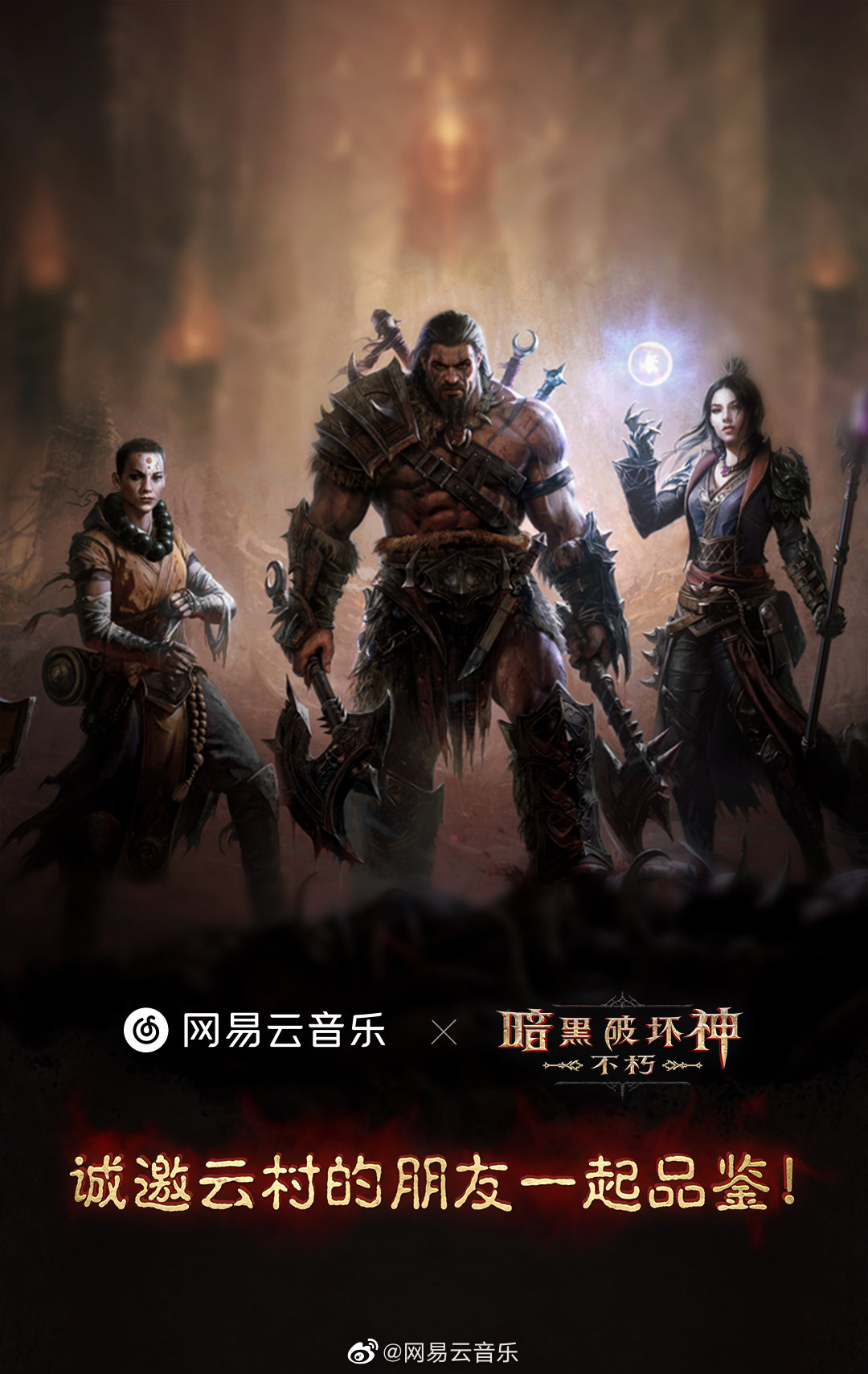 值得一提的是,今日晚间,网易云音乐官微宣布,将联手《暗黑破坏神:不朽》,为云村勇士争取到大福利。