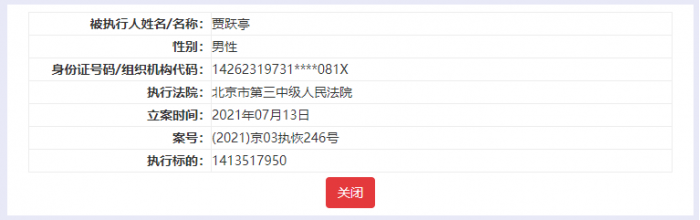 此外,今年6月,贾跃亭新增被执行人信息,执行标的159333088元,执行法院为北京市第三中级人民法院。