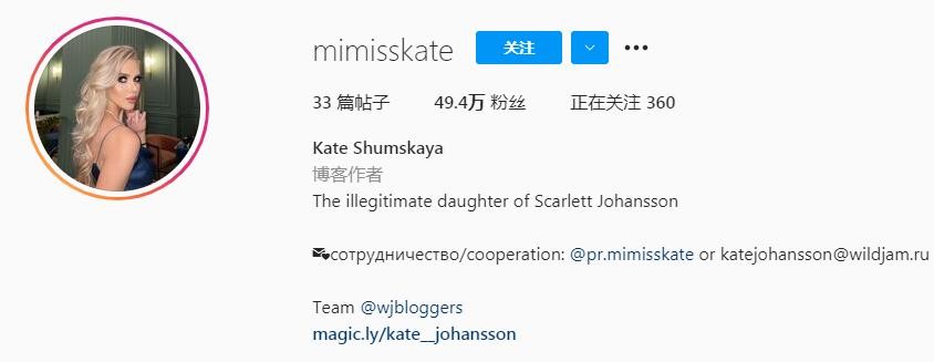 据悉,Kate Johansson本名为KateShumskaya出生于1996年,来自俄罗斯迈科普。斯嘉丽·约翰逊出生于1984年,因为与寡姐太过相像,她也COS过不少黑寡妇的形象来拍摄短视频,一度让人以为寡姐本人入驻了TikTok平台。