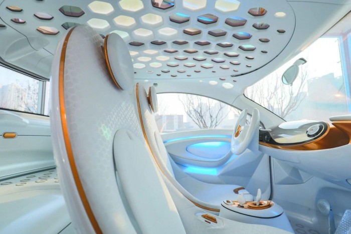 而车顶在搭载大面积天窗的同时,还有许多大小不一的金色矩形元素点缀。在增加整车的科技感的同时,也不免容易让人联想到此前smart概念车上已经出现过的太阳能车顶。