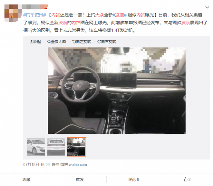 近日,有网友曝光了全新上汽大众凌渡的内饰照片,可以看到新车内部搭配有贯穿液晶显示仪表,科技感更强。此外,新车有望在今年年内正式上市。