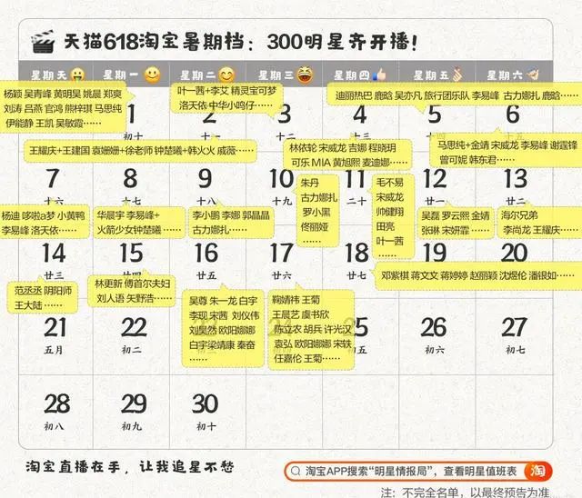 2020年“618”明星直播阵容
