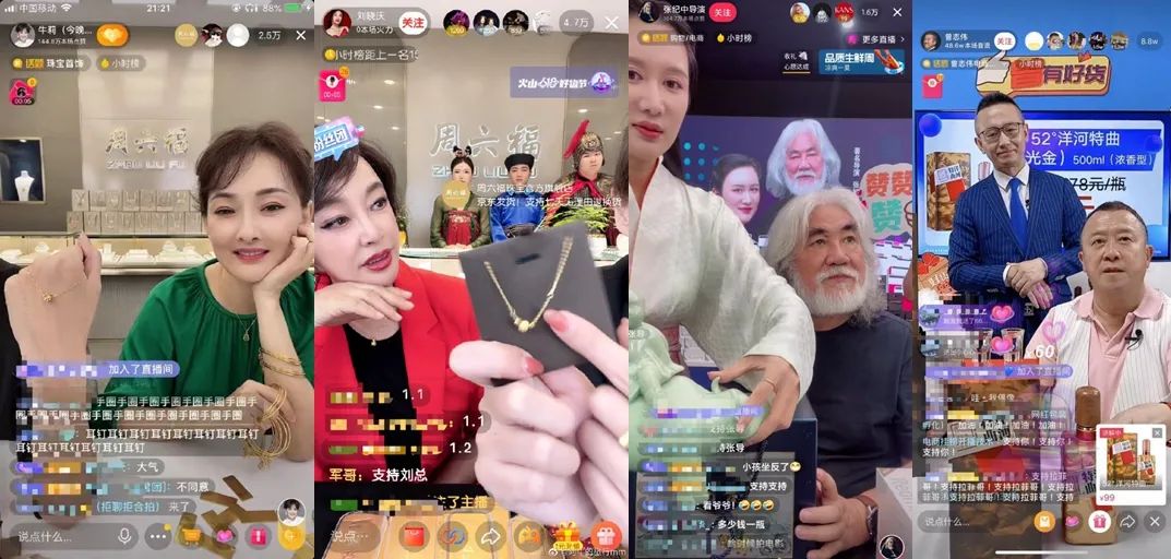 另外,刘晓庆、曾志伟、张纪中、牛莉、闫学晶、金巧巧等也出现在直播间里。最近,王力宏为售卖音乐课程,还在直播间刮胡子,观看人数破千万。