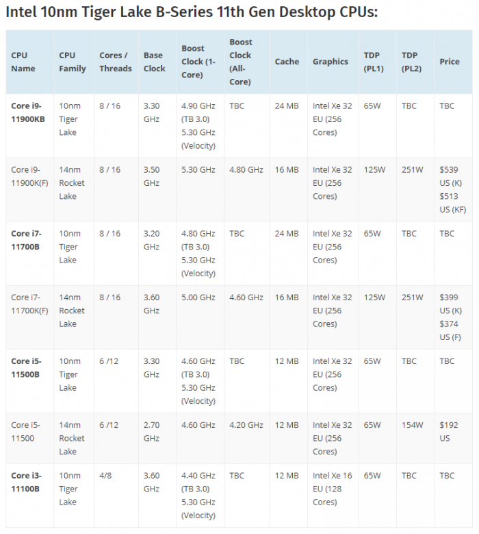 同系列还有i7-11700B、i5-11500B、i3-1100B。