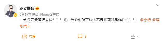 理想水银事件当事人@正义谦叔 此前在社交媒体发文,表示将继续爆料,与理想你死我亡。随后,@正义谦叔 在微博爆料,理想汽车主驾座椅内也有水银,怀疑被批量污染。