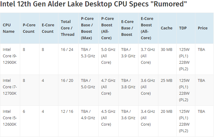 这款 Alder Lake 桌面旗舰处理器还配备了 30MB L3 缓存,热设计功耗(TDP)为 125 W(PL1)和 228W(PL2)。
