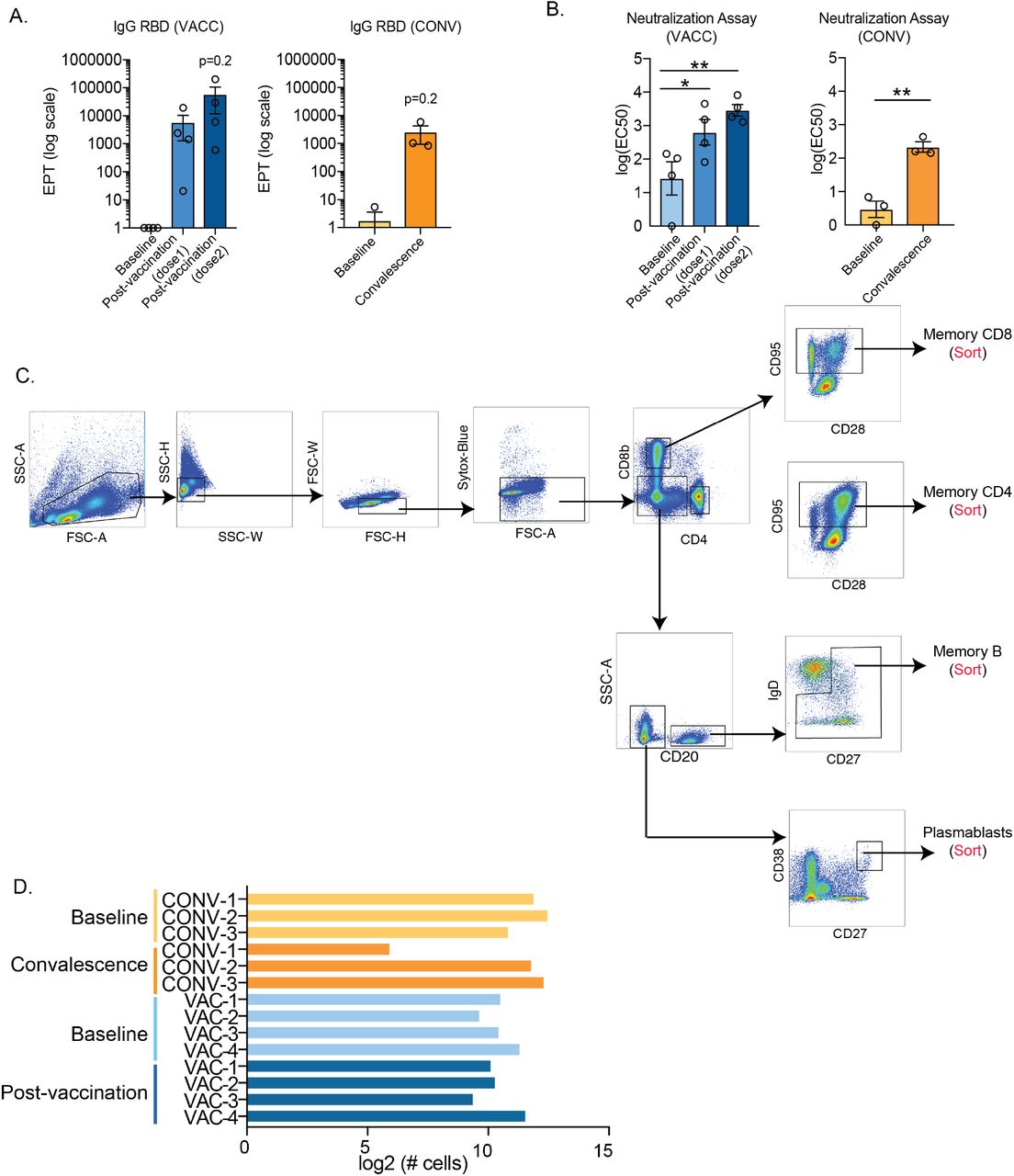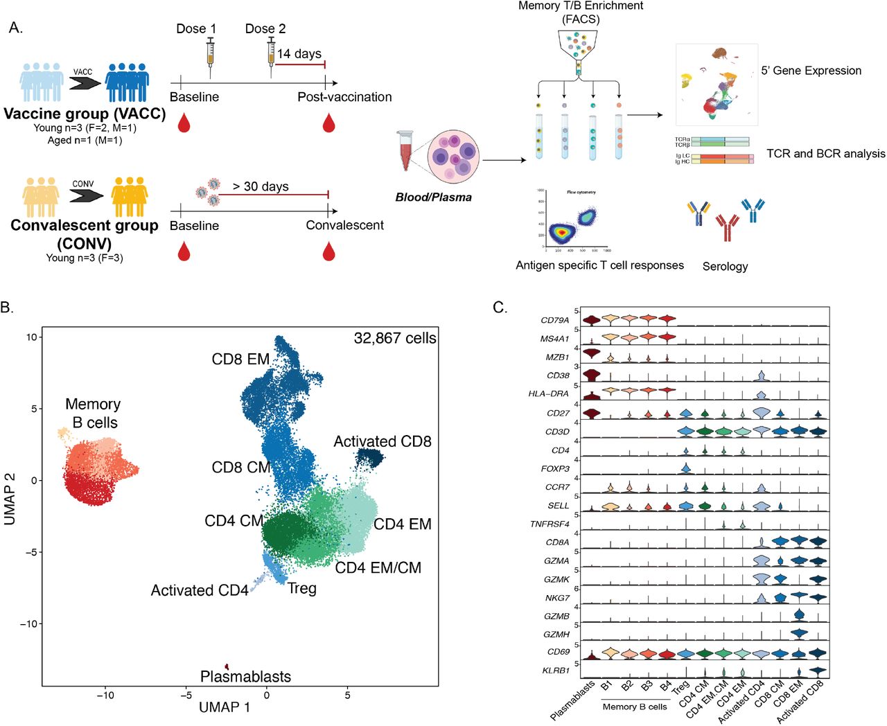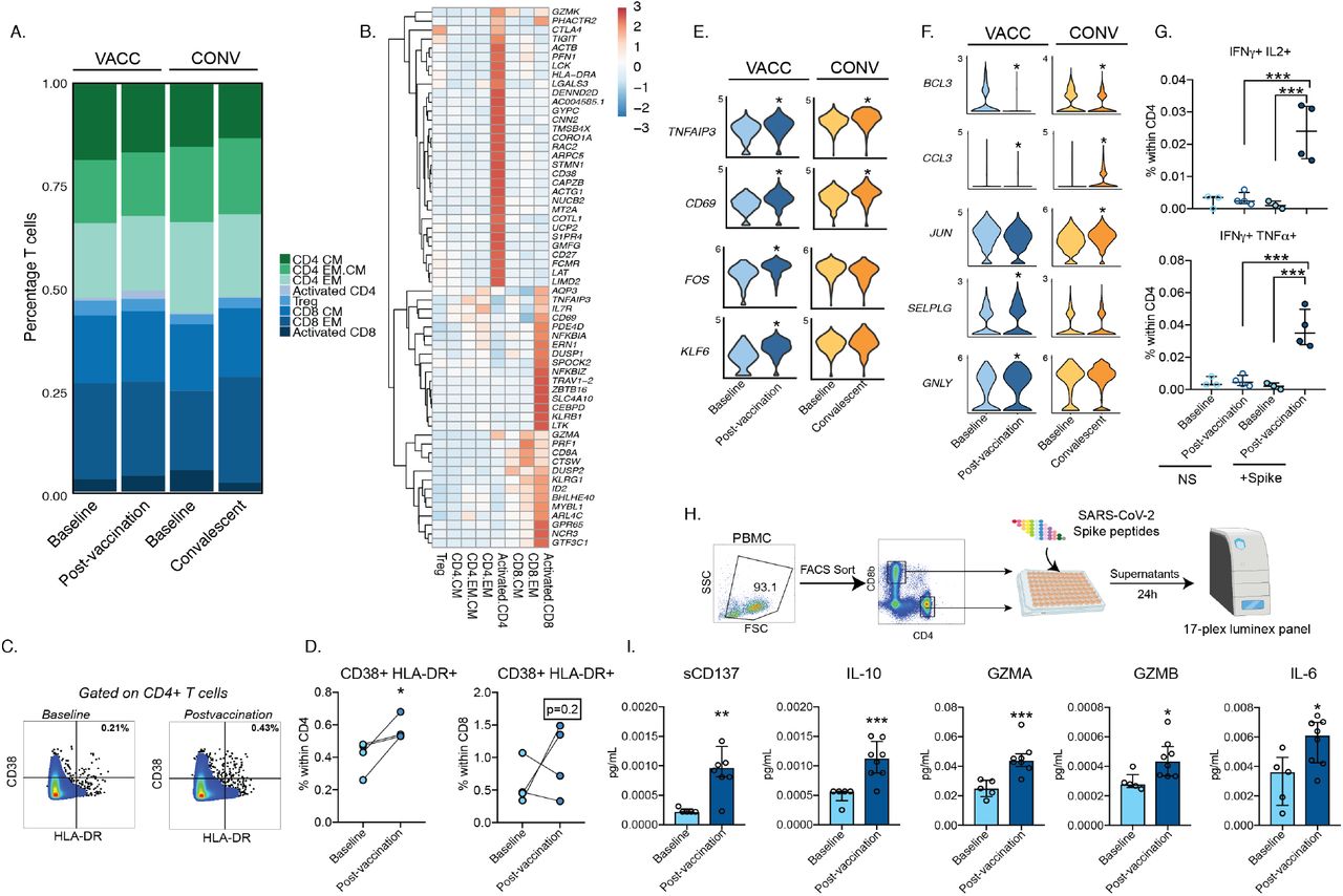 研究人员解释说,这项研究目的是解决两个问题,分别是记忆T细胞和B细胞对基于mRNA的COVID-19疫苗接种的功能和转录组反应是什么?以及疫苗反应与无症状的SARS-CoV-2感染的反应有何不同?