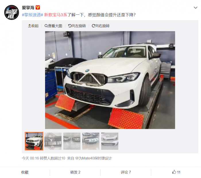 近日,网传一组疑似新款宝马3系部分零部件得图片,通过这些部件大致能看出中期改款3系的外观变化,同时其有望于2022年正式发布。新车外观有着较大的改动,其中前脸上换装了最新家族的一体式“双肾”格栅,外廓边缘不再搭配镀铬而是磨砂灰的色调,而内嵌开口采用了半开放式设计,并集成了毫米波雷达面板在其中。