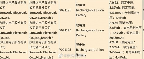 此前,据微博名为@数码闲聊站的爆料细节,我们可以看到iPhone 13系列的电池可能是2406mAh,3095mAh和4352mAh,与同类机型相比,2406mAh比iPhone 12 Mini使用的2227mAh要高出10%左右。