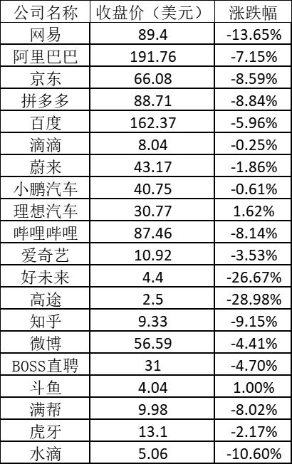 在美上市的主要中概股表现如下: