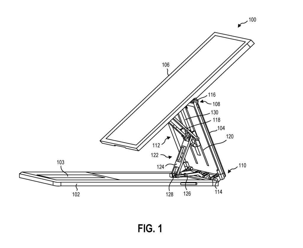 根据最新公示的技术专利,微软正考虑为 Surface 产品线采用类似于 iPad Pro 的浮动铰链。该专利名为“计算设备铰链”,于今年 7 月 22 日公示收录。在专利中描述了一种更加复杂的铰链机制,可以将屏幕提升到底座之上。它还将允许屏幕向前拉,更接近用户,使触摸屏和手写笔的使用更加直接。