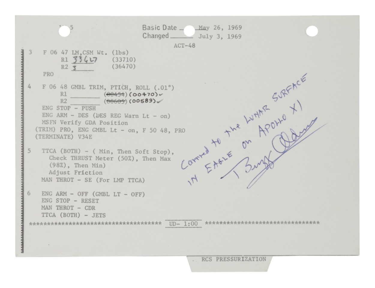 带有尼尔·阿姆斯特朗亲手注释的月球表面飞行清单 - 6.3万美元